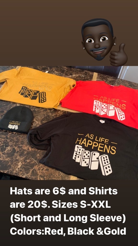 As Life Happens shirts now available in sizes Small- XL. (Short and Long Sleeve) Feel free to contact me if you would like to purchase one. (DFW)